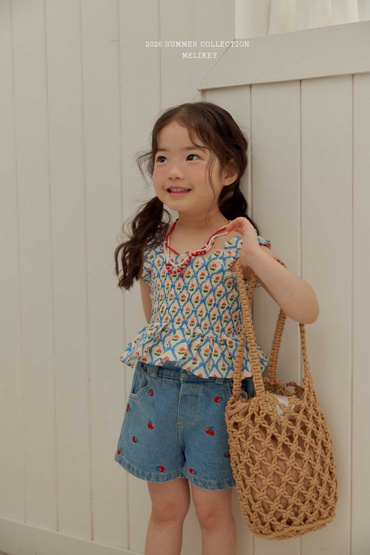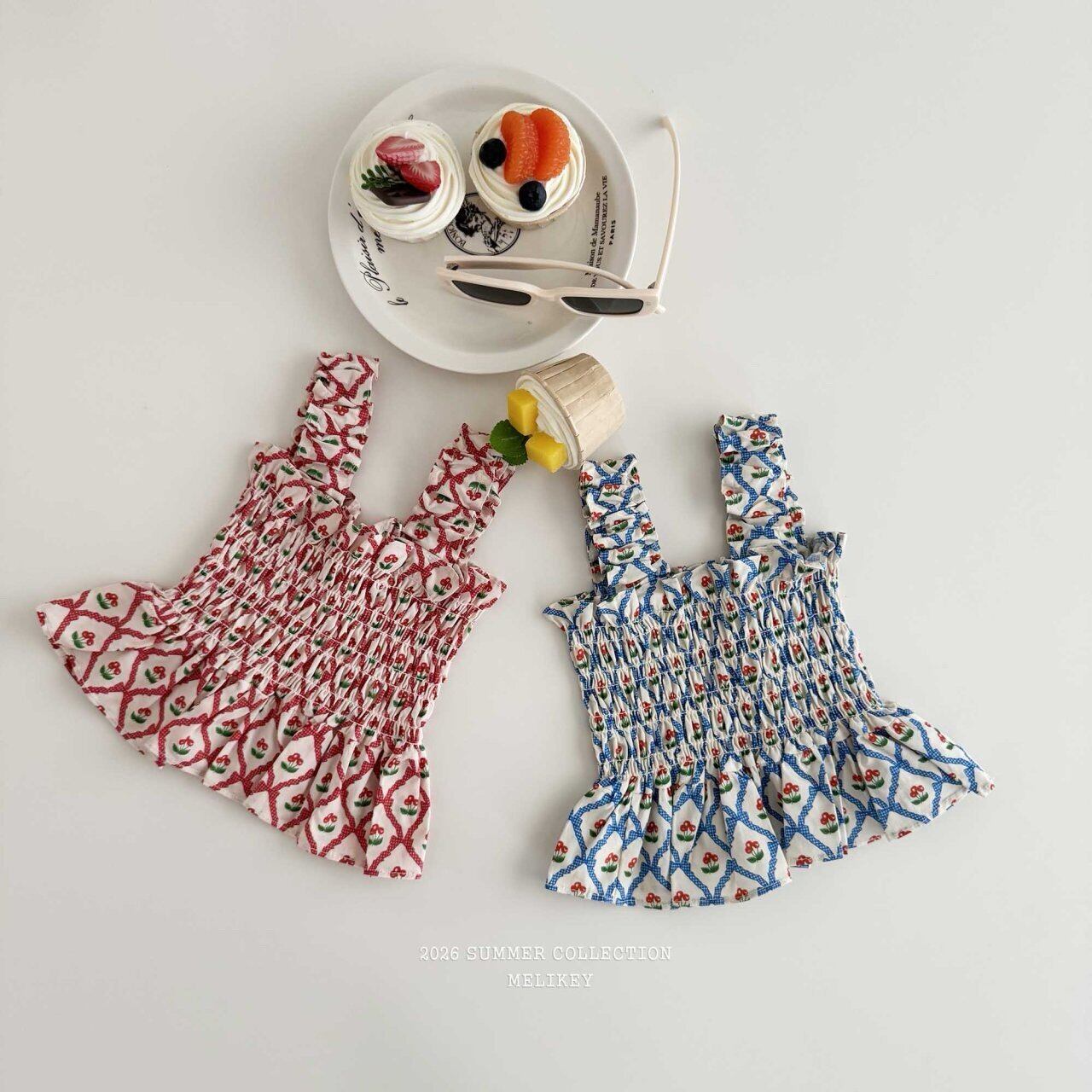 melikey /  cherry ribbon tucking blouse【for kids & Jr.】