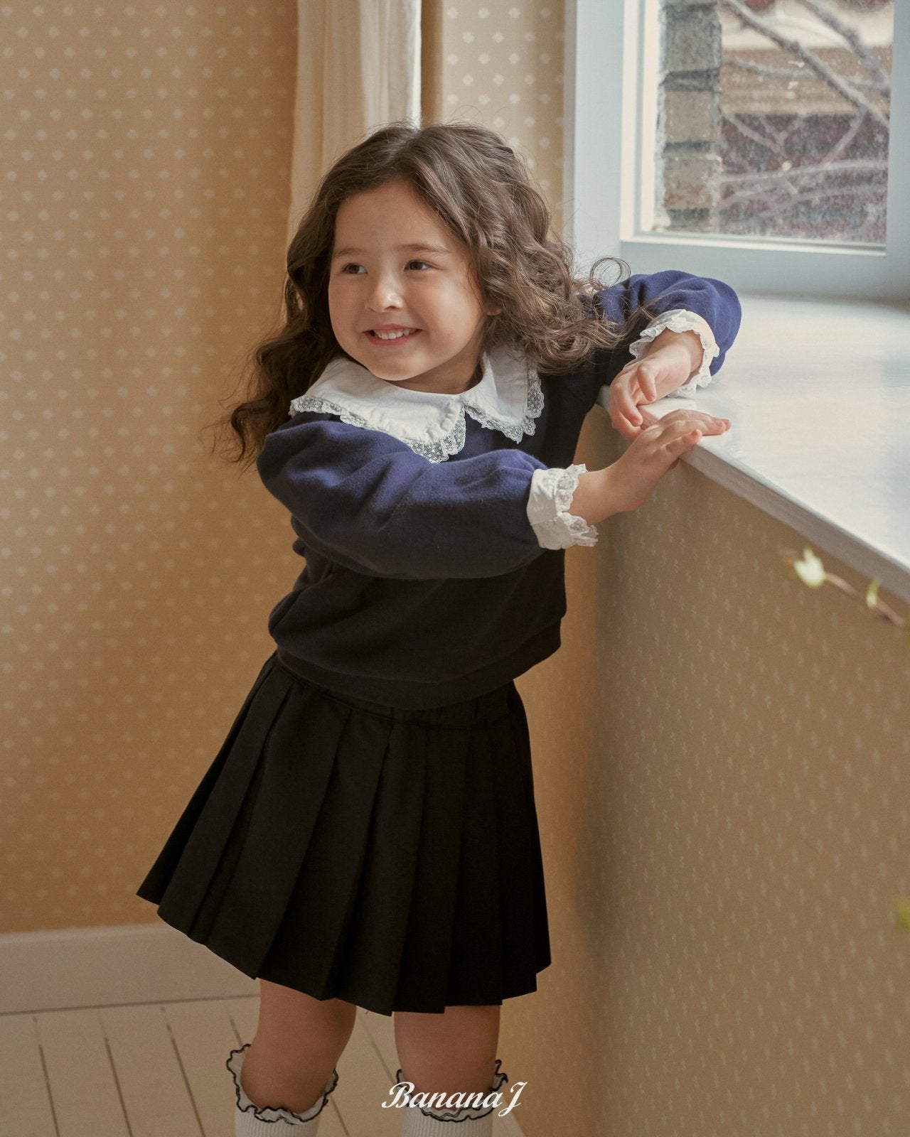カラーと袖口には繊細なレースディテールを加え、レイヤードしたようなスタイルを一着で演出できます。
